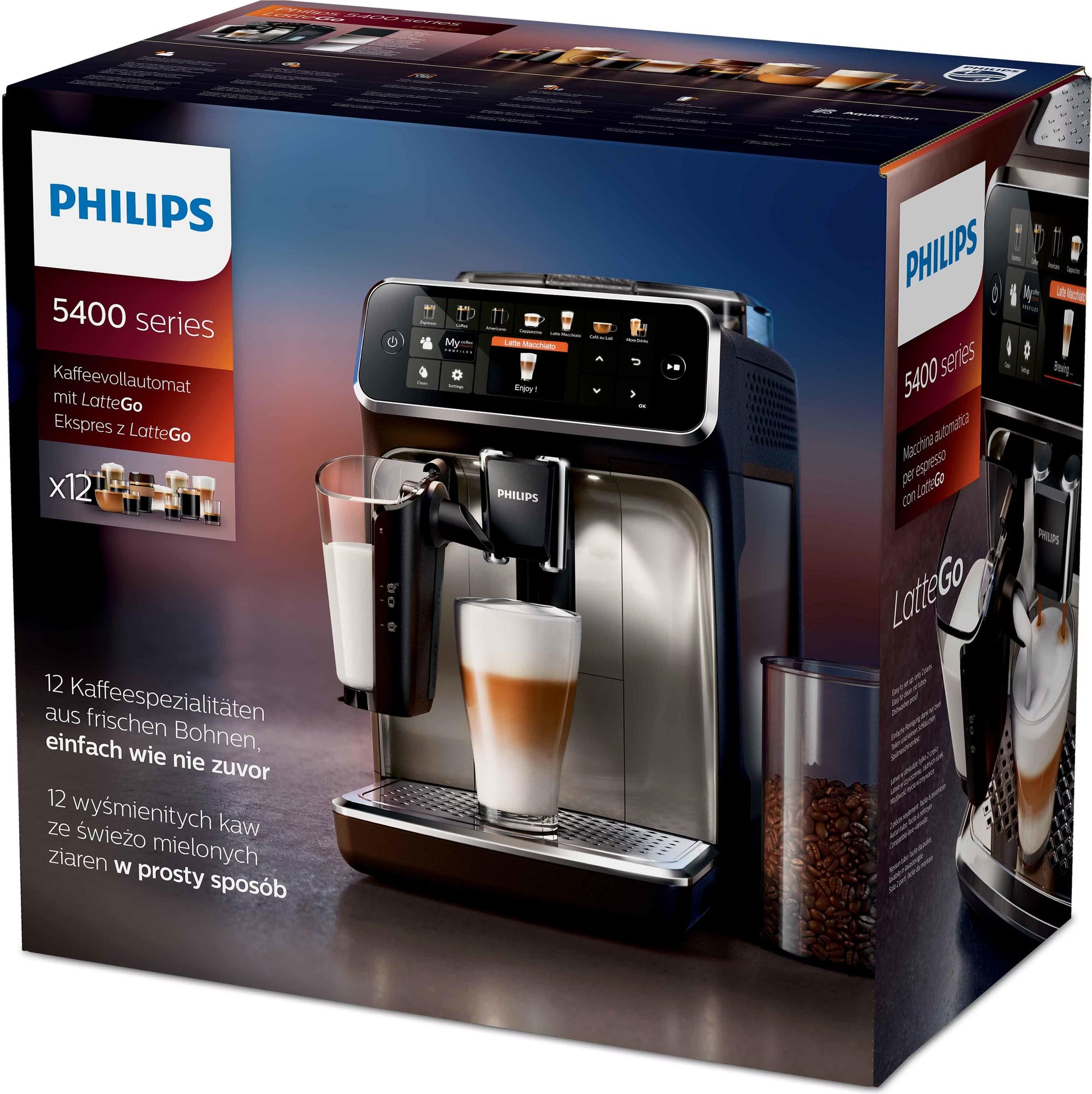 Kaffeevollautomat 5400 Series EP5447/90 Automatische Kaffeemaschine 12 Kaffeespezialitäten und 4 Benutzerprofilen, mit Milchaufschäumer, LatteGo Milchsystem, Touchdisplay- 15 bar - Schwarz